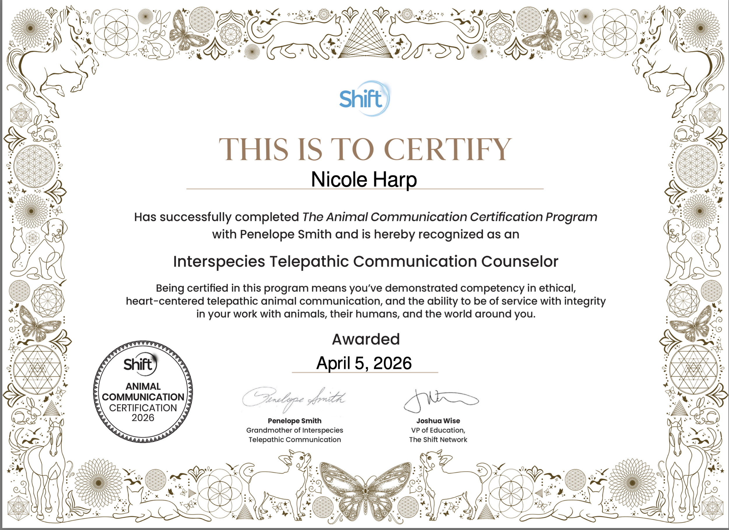“Nicole's intuitive connection with our animal loved ones is exceptional. She brings wisdom, love and caring to all living beings and is my go to when I need more insight into my furry family.”