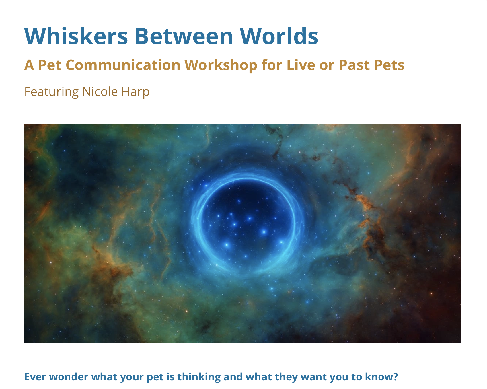 “Nicole's intuitive connection with our animal loved ones is exceptional. She brings wisdom, love and caring to all living beings and is my go to when I need more insight into my furry family.”